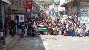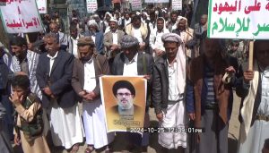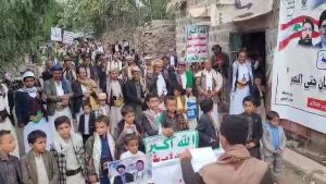 إلى ذلك شهدت مديريات المربع الشمالي “يريم، السدة، النادرة، والرضمة” عشر مسيرات حاشدة، جدّد خلالها المشاركون تضامن الشعب اليمني وقواته المسلحة مع المقاومة اللبنانية واستمرار اليمن في معركة الإسناد دفاعاً عن فلسطين ولبنان.