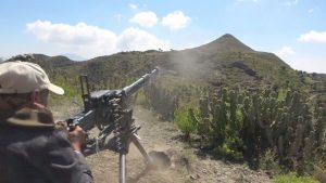 وخلال المناورة بحضور قيادتي السلطة المحلية والتعبئة العامة بالمديرية تم توزيع المشاركين إلى مجموعات استطلاع ورصد واسناد واقتحام وتم استخدام الاسلحة المتوسطة والخفيفة ضد مواقع افتراضية للعدو الامريكي والصهيوني ..