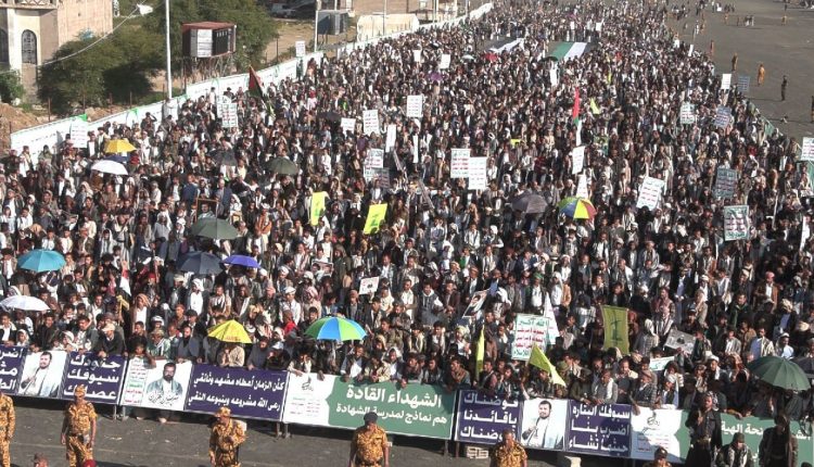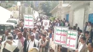وأكد بيان صادر عن المسيرات، تلاه رئيس جامعة جبلة للعلوم الطبية الدكتور عبدالله المطري استمرار الشعب اليمني في خروجه الأسبوعي نصرة للمظلومين ومواجهة الطغاة والمجرمين في مسيرات مليونية بلا كلل ولا ملل، انطلاقاً من الإيمان بالله وجهاداً في سبيله وابتغاءً لمرضاته واستجابةً لنداء المجاهدين في حركة المقاومة الإسلامية “حماس”.