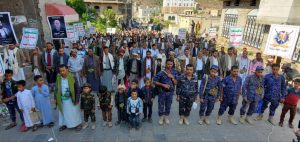 ففي مركز المحافظة خرجت مسيرة غفيرة بحشودٍ هائلة في ساحة الرسول الاعظم تتقدمهم قيادة السلطة المحلية والتعبئة العامة بالمحافظة، تعالت اصوات المحتشدين بحماس و بصوتٍ عالٍ والأسلحة على الأكتاف بالاستعداد والجهوزية للمواجهة مع الصهاينة والامريكان ..