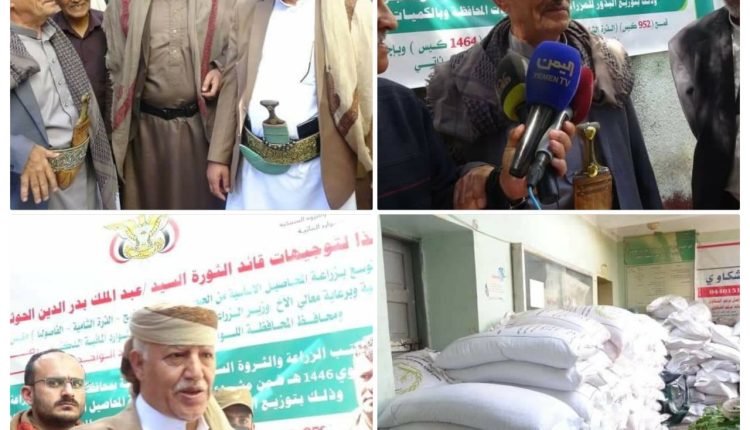 من جانبه، أوضح مدير مكتب الزراعة، المهندس حمود عبدالوهاب الرصاص، أن توزيع البذور المحسنة يهدف لاستغلال موسم الأمطار للتوسع في زراعة كآفة محاصيل الحبوب والبقوليات.