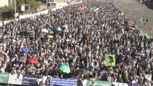 وردد المشاركون في المسيرات، شعارات منددة بالحصار والعدوان الصهيوني، الأمريكي، البريطاني، مؤكدين أن التطبيع مع الكيان الغاصب هو خيانة للأمة والأجيال المقبلة، ويجب أن يُواجَه بمقاومة شعبية عارمة.