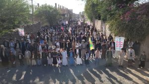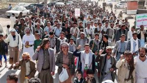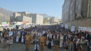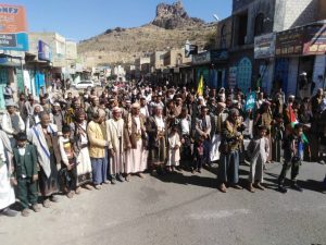 واحتشد أبناء مديرية مذيخرة في 11 مسيرة بمركز المديرية وعزل الأفيوش وحليان وحزة وخولان ومناطق الشرقي الاشعوب وحصبان والجوالح وبني الورد وبني علي وسوق النجد