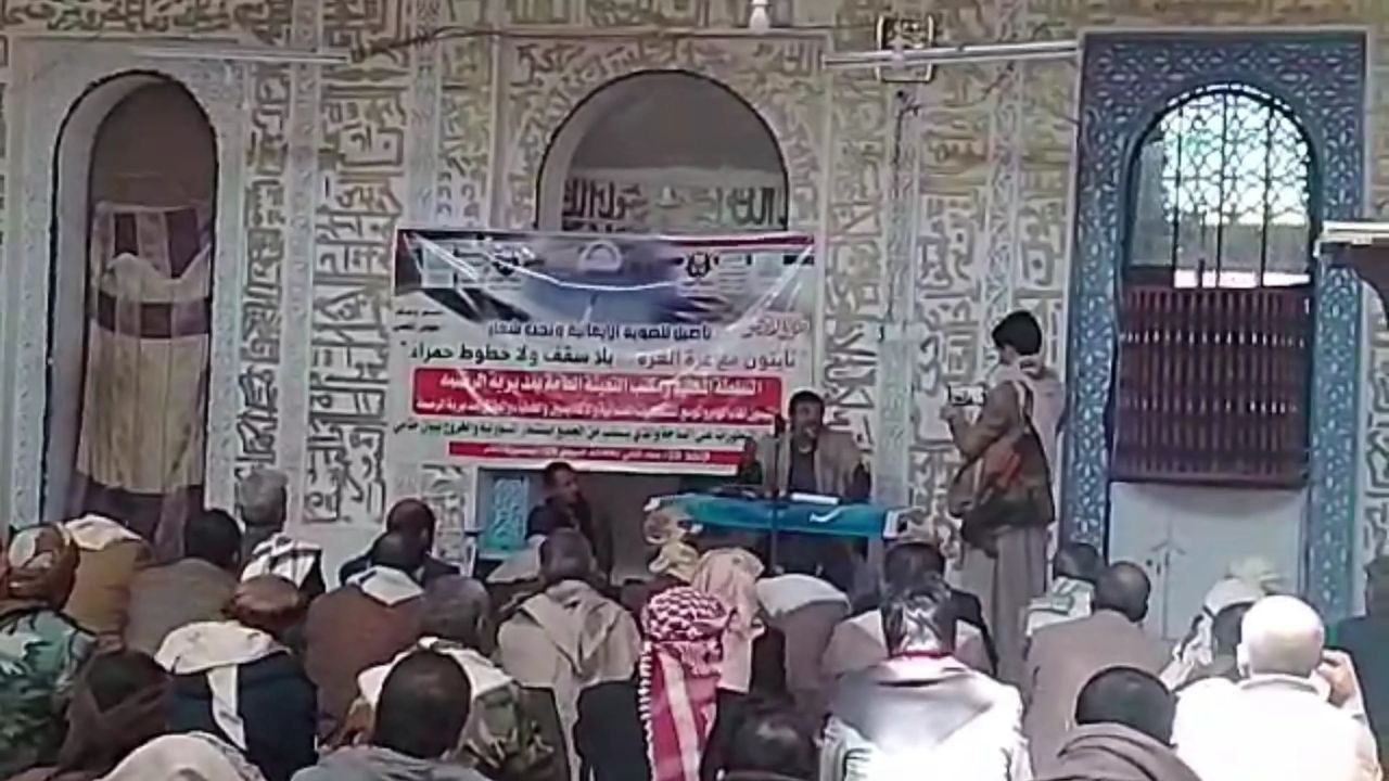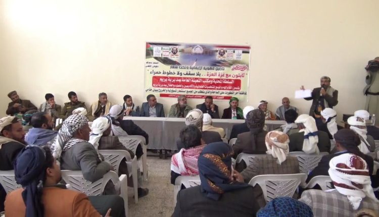 أقيمت في مديريات يريم والسدة والرضمة بمحافظة إب لقاءات موسعة للعلماء والخطباء والاكاديميين والعقال ، تأصيلا للهوية الإيمانية وإسنادا لغزة وتحت شعار ” ثابتون مع غزة العزة .. بلا سقف ولا خطوط حمراء ” ..