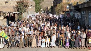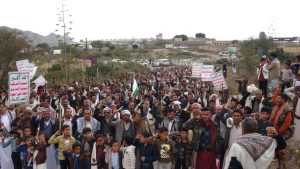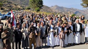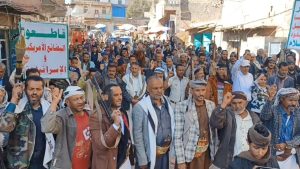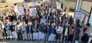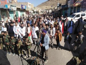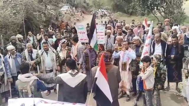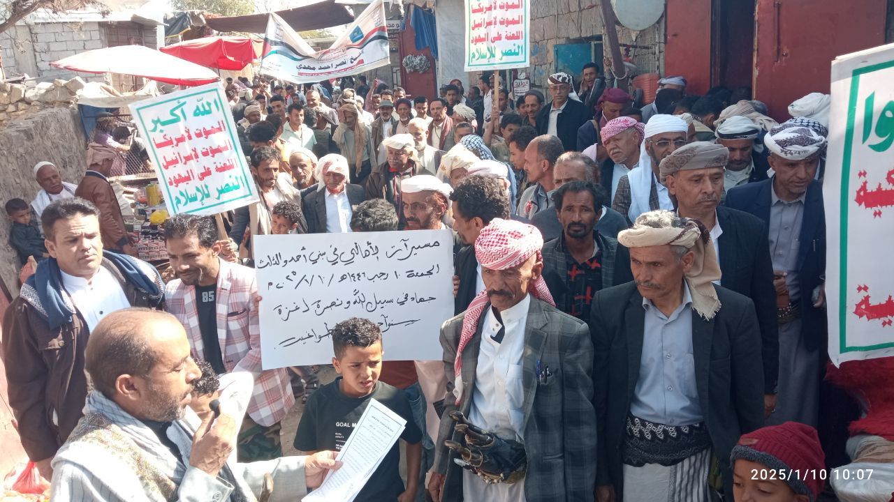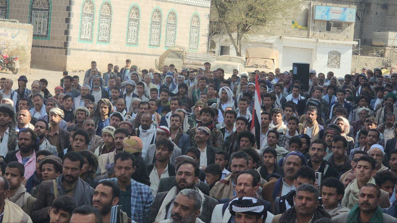 إلى ذلك شهدت مديريات المربع الشمالي “يريم، السدة، النادرة، والرضمة” 17 مسيرة حاشدة، تقدّمتها قيادات المديريات الأربع، أكد المشاركون خلالها الاستمرار في إسناد الشعب الفلسطيني حتى إيقاف العدوان الصهيوني على غزة.