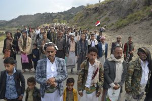 وأكد بيان صادر عن المسيرات، استمرار أبناء إب في معركتهم المقدسة بكل إيمان وثبات، وتوكل على الله، واعتماد عليه دون خوف ولا تراجع.