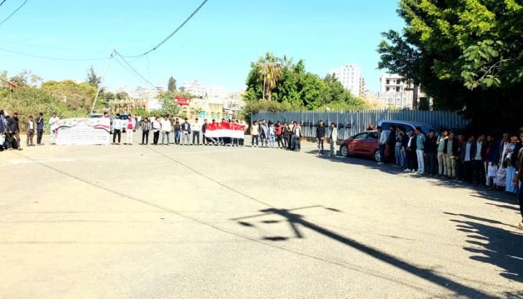 وقفة حاشدة في جامعة إب تنديداً بالجرائم الصهيوأمريكية
