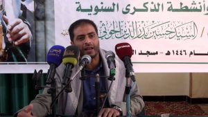 واوجز الورافي جانبا من المحطات والمواقف العظيمة ومشاهد الثبات على الحق والتضحية في سبيله ومواجهة المستكبرين بكل عزيمة وإيمان وشجاعة وعدم التنازل عن الحق وهذا المشروع حتى قدم حياته ثمنا له ودفاعا عنه وحرصا على استمراره .. لافتا إلى مكانة الشهيد القائد وفكره النهضوي التنويري، والقيم والمبادئ التي حملها المشروع القرآني لتصحيح مسار الأمة، والتحذير من مخاطر التآمر عليها.
