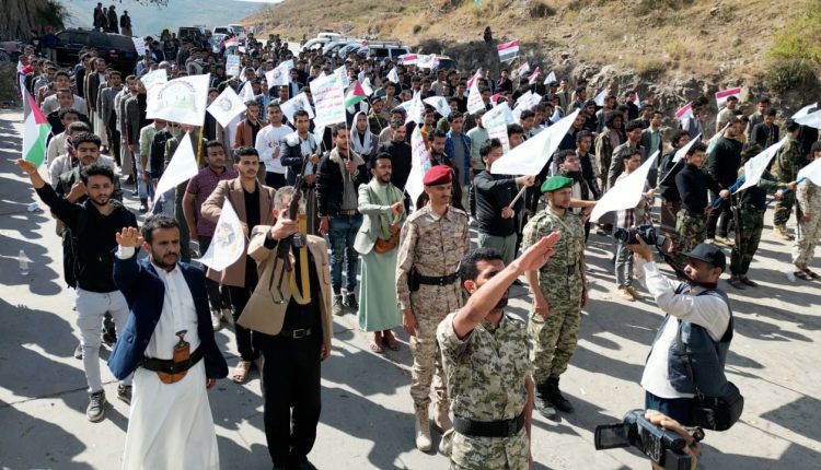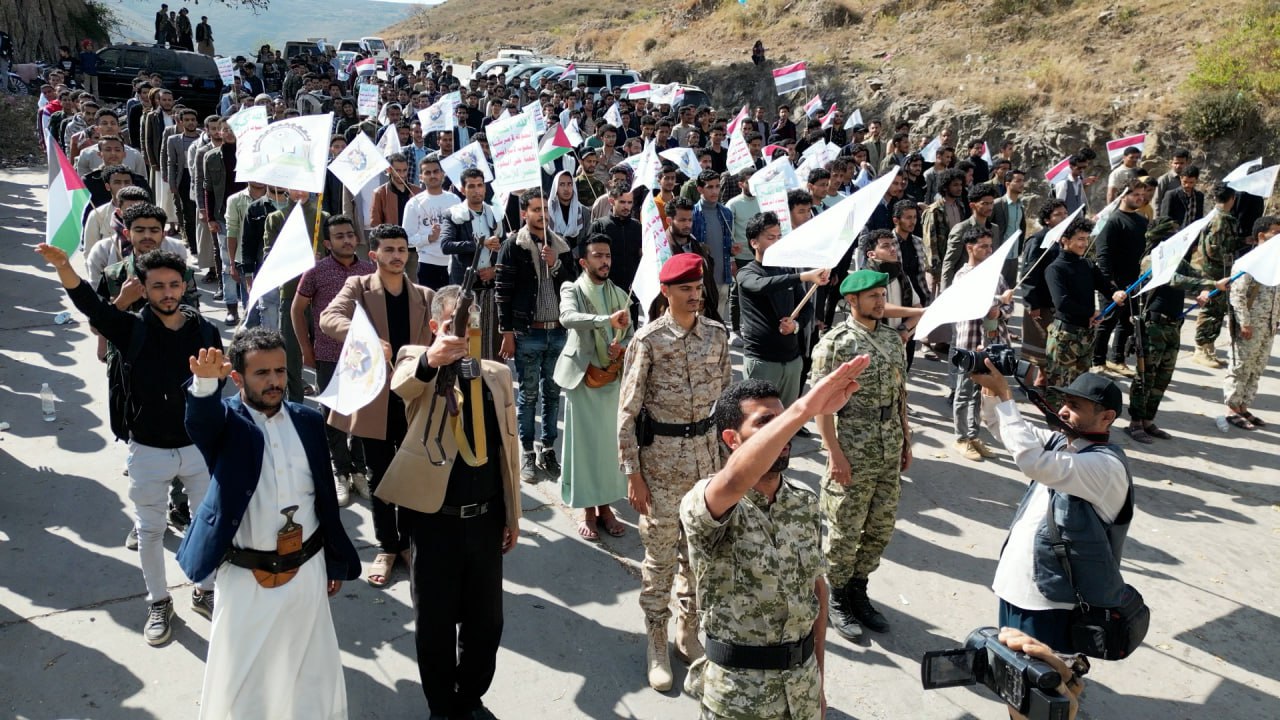 اقيم في محافظة إب اليوم مسير ومناورة عسكرية تطبيقية لخريجي دورات التعبئة العامة ” طوفان الاقصى ” لعدد ( 850) خريج من مختلف اقسام وتخصصات فرع جامعة العلوم والتكنولوجيا ..