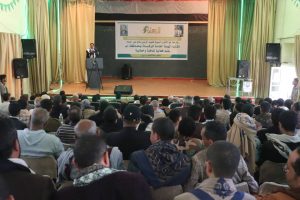 كما أكد ميمون فيروز في كلمة الخطباء أهمية السير على منهج ومشروع الشهيد القائد والشهيد الصماد واستلهام معاني التضحية والاستبسال والشجاعة والتواضع من حياة القادة العظماء والاقتداء بهم، مستعرضاً مناقب وخصال الشهيد القائد ودوره في توحيد الصفوف في مواجهة قوى الظلم والطغيان وأدواتهم بالمنطقة.