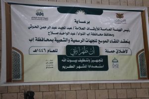 نظمت السلطة المحلية ومكتب الهيئة العامة للأوقاف بمحافظة إب اليوم ، لقاء موسعا للجهات الرسمية والشعبية تدشيناً لحملة “أن طهرا بيتي” واستعدادا لاستقبال شهر رمضان المبارك.