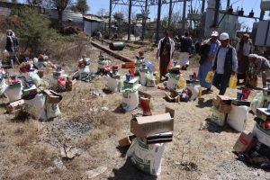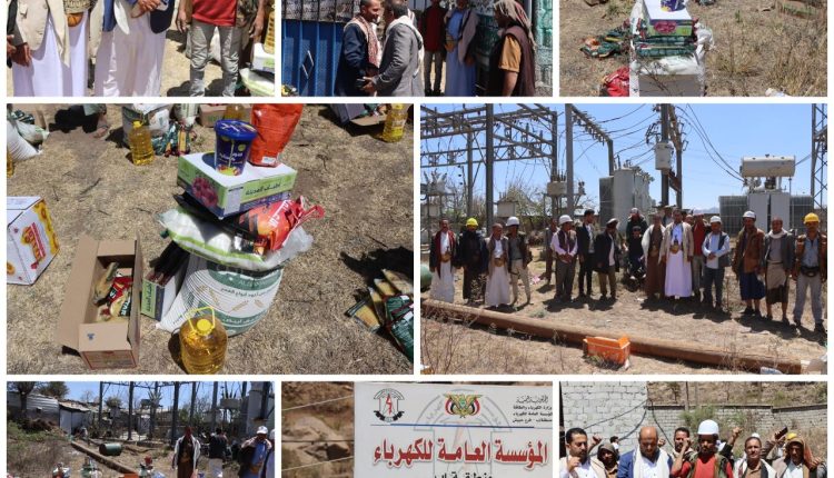 تدشين توزيع السلال الغذائية لموظفي كهرباء حبيش بإب .