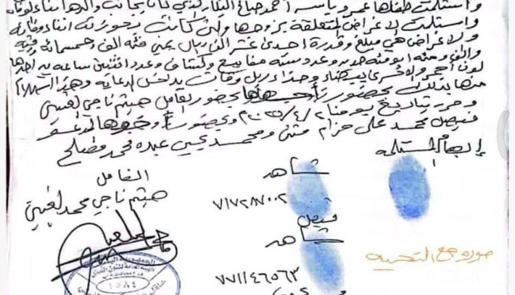 واكدت الوثيقة ان المتوفي واسمه ياسر احمد صالح البكار ، الذي توفي في حارة الغيثي بالمعاين بجوار طفله اثناء تناولهما للطعام ظهر الأمس ، انه تم العثور على مبلغ (11) الف ريال كانت بحوزة المتوفي وبعض المتعلقات وتم تسليمها من قبل عاقل الحارة لزوجة المتوفي بمحرر رسمي وشهادة الشهود ( الوثيقة) .