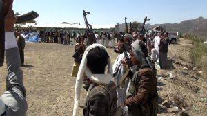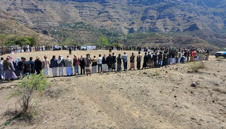 وقفة قبلية حاشدة في الشعر بإب لمواجهة التصعيد الامريكي وثابتا على الموقف مع غزة ..