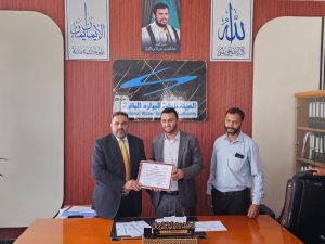 وفي الختام جرى تكريم عميد مركز المياه والتغيرات المناخية بجامعة ذمار- مدرب الدورة الدكتور نبيل العريق ومدير إدارة التوعية والتدريب بفرع هيئة الموارد بذمار، المهندس هاشم الديلمي.