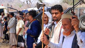 ابناء مديرية حزم العدين بإب يعلنون الإستنفار ضد العدوان الامريكي والبراءة من الخونة والعملاء