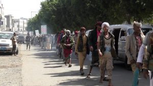 وانطلق المسير بحضور نائب مسؤول التعبئة العامة بالمحافظة العميد عبدالله الوائلي ومدير المديرية فضل زيد ومسؤول التعبئة بالمديرية علاء السادة ، من الاستاد الرياضي باتجاه سائلة جبلة ومنطقة المحمول ..