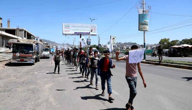 إب : مسير ووقفة لطلاب المدارس الصيفية بمديريتي الظهار والمشنة .