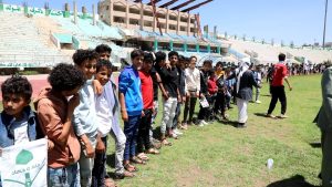 وانطلق المسير بحضور مدير مكتب التربية رئيس اللجنة الرئيسية بإب محمد الغزالي ونائبه محمد المتوكل ومدير المديرية فضل زيد ومسؤول التعبئة بالمديرية علاء السادة ، من مدرسة الرئيس الصماد إلى الاستاد الرياضي وسط مدينة إب ..