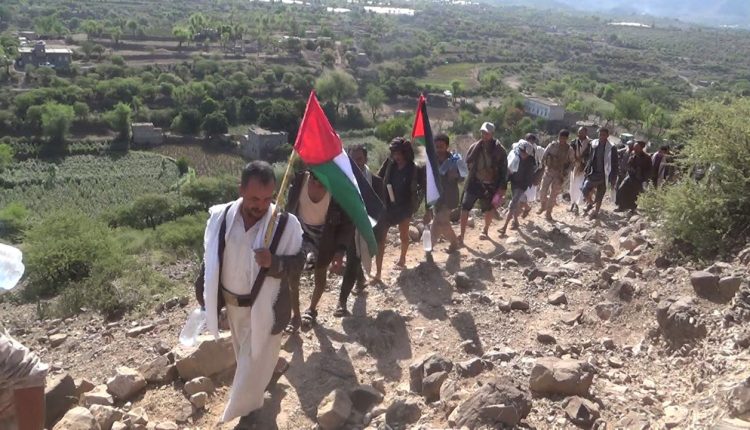 إب : مسير ومناورة ووقفة شعبية لخريجي دورات التعبئة بعزلتي بني سرحة وجبل عقد بالمخادر .