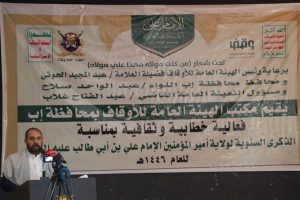 نظم مكتب الهيئة العامة للأوقاف بمحافظة إب، اليوم، فعالية خطابية وثقافية احتفاءً بعيد الغدير ” ذكرى يوم الولاية ” للعام 1446هـ.