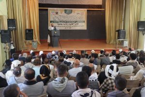 وفي كلمة العلماء، إستعرض عضو رابطة علماء اليمن مقبل الكدهي، فضائل الإمام علي عليه السلام، ودلالات ومعاني ذكرى يوم الولاية في إكمال الدين وإتمام النعمة والفضل من الله تعالى .. مشددا على أهمية تنفيذ التوجيهات الإلهية والتولي الصادق للرسول الأعظم والإمام علي عليهما السلام  .. مبينا أن غياب فهم الأمة لمبدأ الولاية في الإسلام جعلها تقع في ولاية اليهود والنصارى.