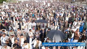 وحمّل المشاركون في المسيرات، الكيان الصهيوني والولايات المتحدة المسؤولية عن العدوان الإجرامي على إيران والذي لا يمكن قبوله، ويمثل انتهاكًا صارخًا للقانون الدولي.. لافتين إلى أن هذه الجرائم تندرج ضمن سياسة الإبادة الجماعية، وترهيب الشعوب.