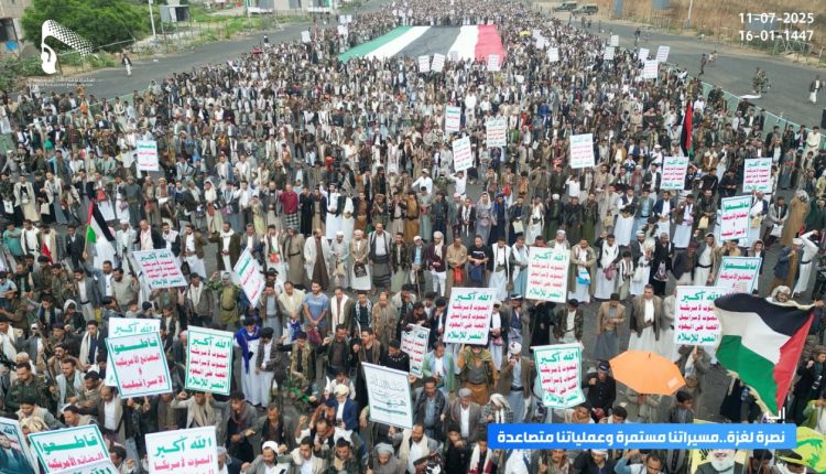 أبناء إب يحتشدون في 219 ساحة تحت عنوان ” نصرة لغزة مسيراتنا مستمرة وعملياتنا متصاعدة “