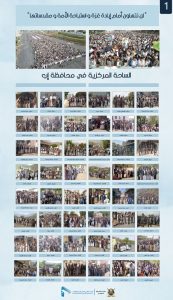 شهدت محافظة إب يوم أمس الجمعة ارتفاعا كبيرا في عدد الساحات التي خرجت اليوم الجمعة بمسيرات ووقفات تحت عنوان “لن نتهاون أمام إبادة غزة واستباحة الأمة ومقدساتها”.