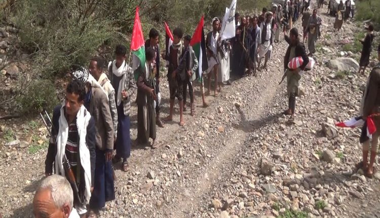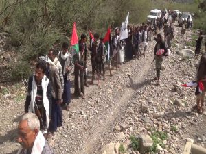 إب : مسير ومناورة تطبيقية لخريجي دورات التعبئة بعزلة حمير بالقفر .