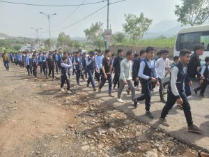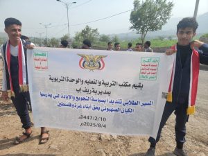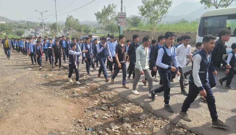 مسيرة طلابية حاشدة في ريف إب تنديداً بجرائم التجويع والإبادة بحق أبناء غزة