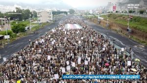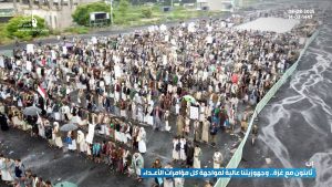 وأعلن بيان صادر عن المسيرات، جاهزية الشعب اليمني لمواجهة أي مخططات ومؤامرات يتحرك فيها الأعداء تحت أي عناوين وبأي شكل ومن أي جهة كانت، مشيرا إلى أن موقف الشعب اليمني العظيم والمشرف أزعج الكفار والمنافقين.