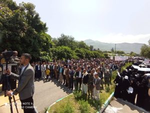 وكان مسؤول التعبئة العامة بالمحافظة قد ألقى كلمة أشاد بالتفاعل الكبير والحضور الحاشد لكافة منتسبي الجامعة من الأكاديميين والإداريين والطلبة في هذه المسيرة الحاشدة بل وفي مختلف الفعاليات والأنشطة المساندة للشعب الفلسطيني الصامد .. مجددا الثبات على الموقف والتأييد المطلق للموقف الإيماني والمبدئي الذي جسدته القيادة العليا المجاهدة ممثلة بسماحة السيد القائد عبدالملك بن بدر الدين الحوثي رضوان الله عليه في الدفاع عن ثوابت ومقدسات ومقدرات الأمة .