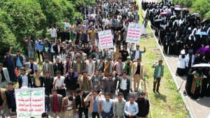 مسيرة حاشدة بجامعة إب مساندة لغزة وتنديدا بجرائم التجويع و الإبادة الجماعية