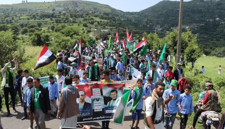 مسير طلابي بمناسبة المولد النبوي الشريف ودعما واسنادا لأبناء غزة في مديرية ريف إب