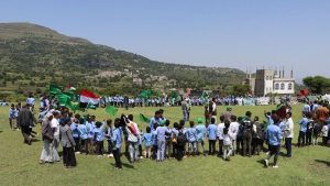 نظم مكتب التربية والوحدة التربوية في في منطقة ريمان بمديرية ريف إب محافظة إب اليوم، مسير طلابي فرحا وابتهاجا بمناسبة ذكرى مولد الرسول الأعظم محمد صلى الله عليه وآله وسلم، ودعما واسنادا لأبناء غزة.
