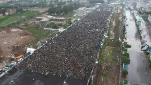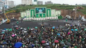 وتدفقت الجموع من مختلف المديريات إلى ساحات الرسول الأعظم بجامعة إب، والاستاد الرياضي، وساحات يريم والعدين، رغم هطول الأمطار في مشهد مهيب عكس عمق ارتباط اليمنيين برسول الله محمد صلى الله عليه وآله وسلم.