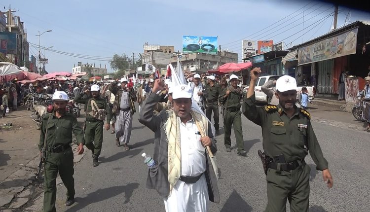 إب : مسير ومناورة تطبيقية ووقفة لخريجي دورات التعبئة العامة بالمخادر .