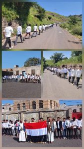 وفي الوقفة والمسير أكد مدير التربية الأستاذ خالد المليكي، أن مكتب التربية في المديرية يجري دورات طوفان الأقصى لطلاب المدارس لتسليحهم بسلاح الوعي والجهاد والارتباط بالهوية الإيمانية الأصيلة، لافتًا إلى أن الشعب اليمني كبيرهم وصغارهم سيكونوا الجيش الشعبي والاحتياطي إلى جانب أبطال القوات المسلحة.