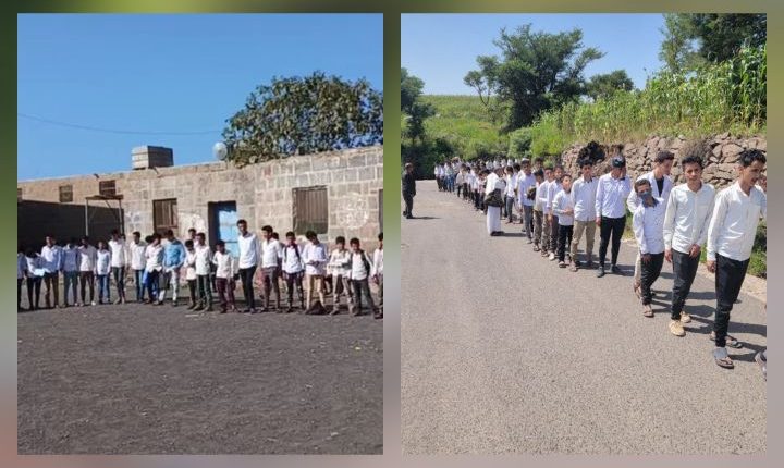 مسير ووقفة لعدد 256 طالباً من خريجي دورات طوفان الأقصى في مديرية ريف إب.