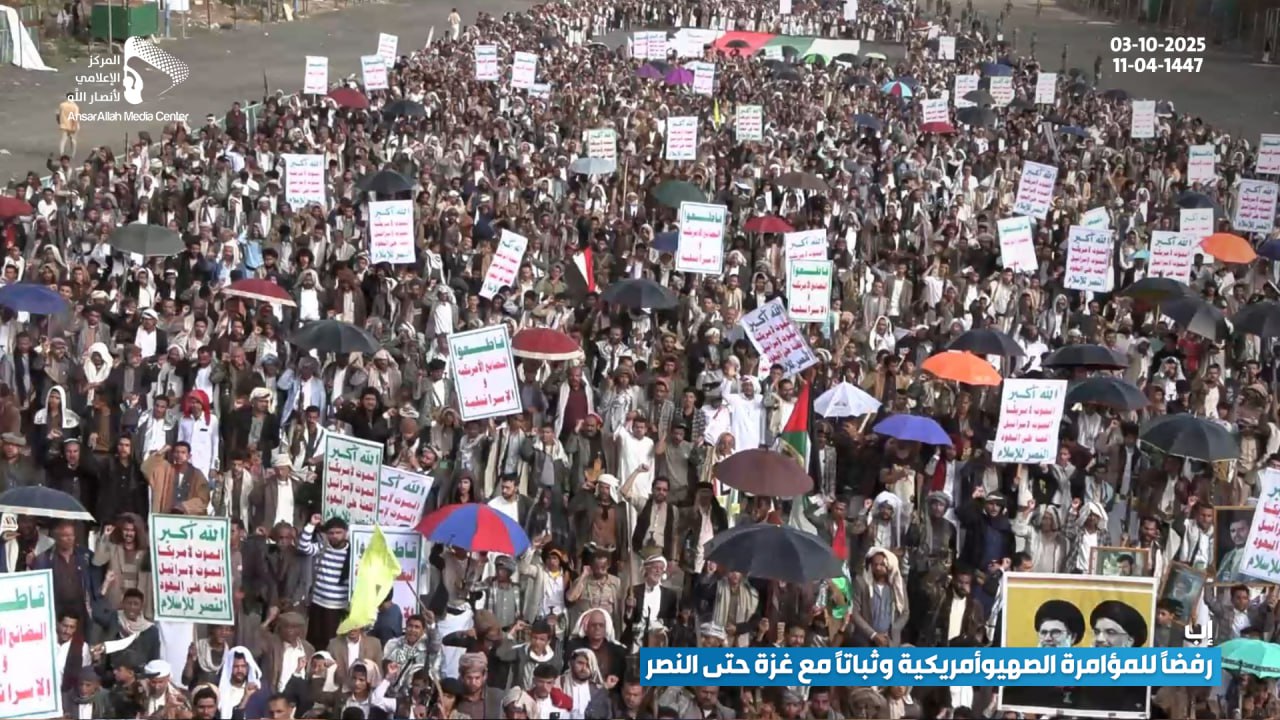 ووجه المحتشدون التحية لكل أحرار العالم من قادة أحرار وشعوب كريمة الداعمين للشعب الفلسطيني وقضيته العادلة والمحقة، ودعاهم إلى المزيد من الجهود الفاعلة مع التأكيد على أهمية التحلي بالوعي بمؤامرات العدو المجرم وأساليبه المخادعة والخبيثة في محاولة الالتفاف على المواقف المشرفة والجهود المؤثرة… مؤكدين أن التحرك الداعم لغزة له تأثيره الكبير والفاعل، وأن مواصلته ضرورة ملحة لإنقاذ غزة وشرف الإنسانية، وفضح المجرمين الصهاينة والأمريكان.. مشيرين إلى أن محاولة المجرم الأمريكي والصهيوني الالتفاف على هذا الحراك أمر غير ممكن ولعبة مكشوفة.