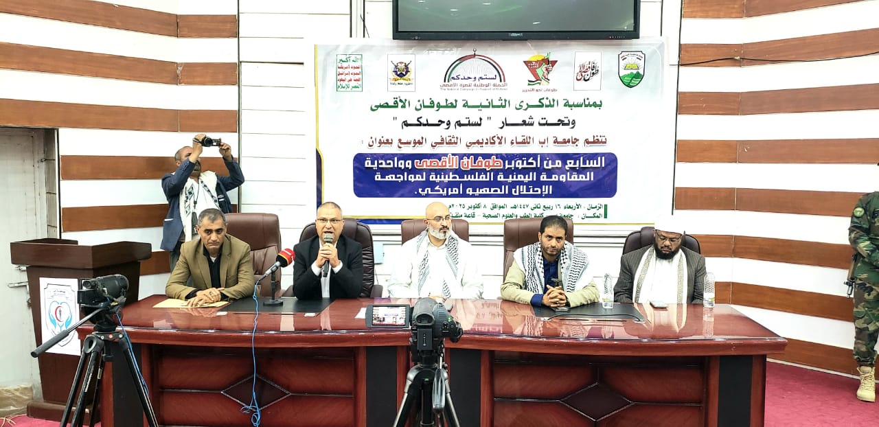 لقاء أكاديمي ثقافي موسع بمناسبة الذكرى الثانية لطوفان الأقصى في جامعة إب