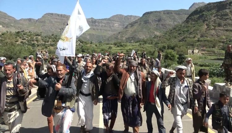 إب :عرض ومناورة شعبية لخريجي دورات التعبئة العامة في المربع الشمالي بالمخادر .