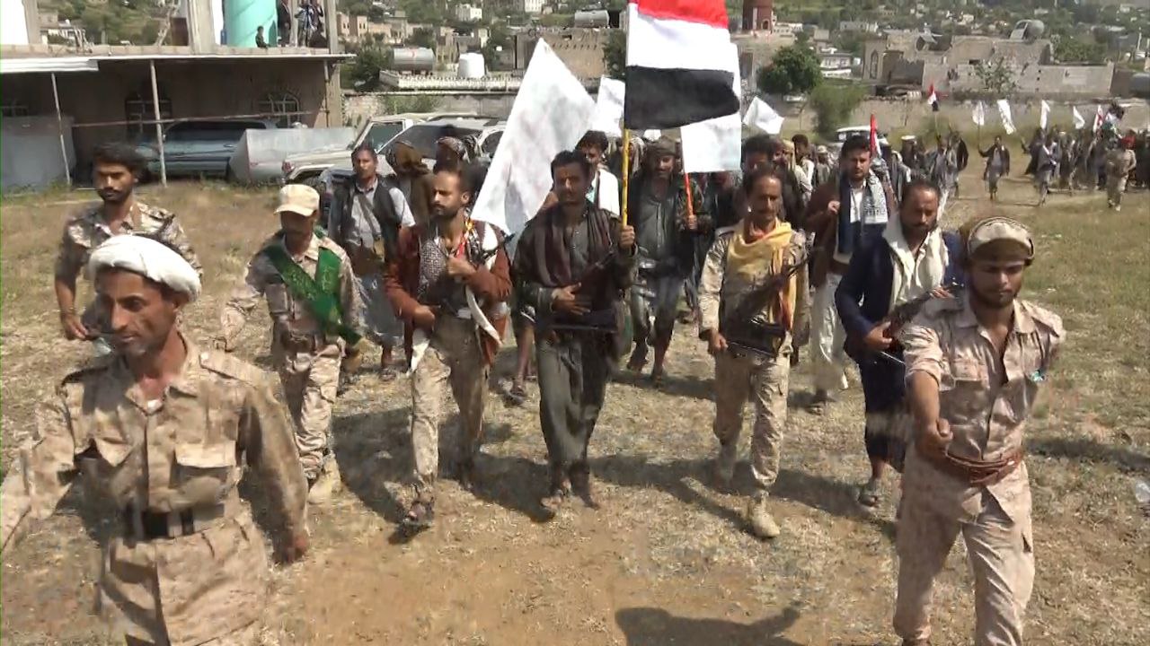 عرض شعبي لقوات التعبئة العامة في عدد من عزل القفر بمحافظة إب.
