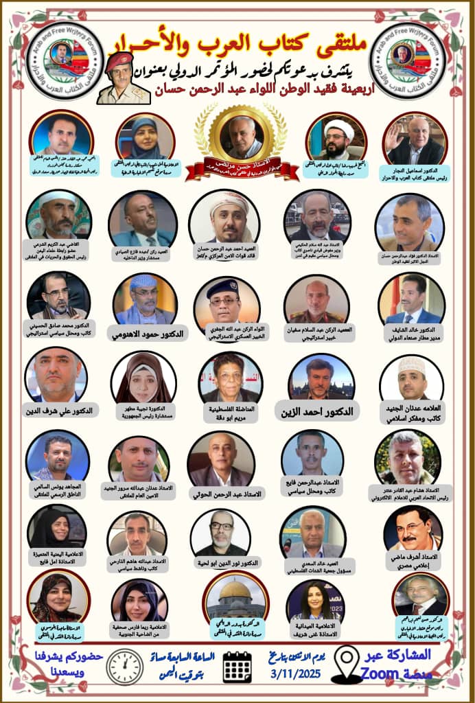 وبإشراف من العميد حميد عبد القادر علي عنتر المنسق العام لملتقى كتاب العرب والأحرار.