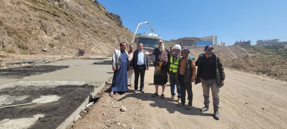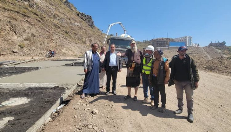 تفقد سير العمل بمشروع إعادة تأهيل المقطع المنهار في طريق مشورة في إب