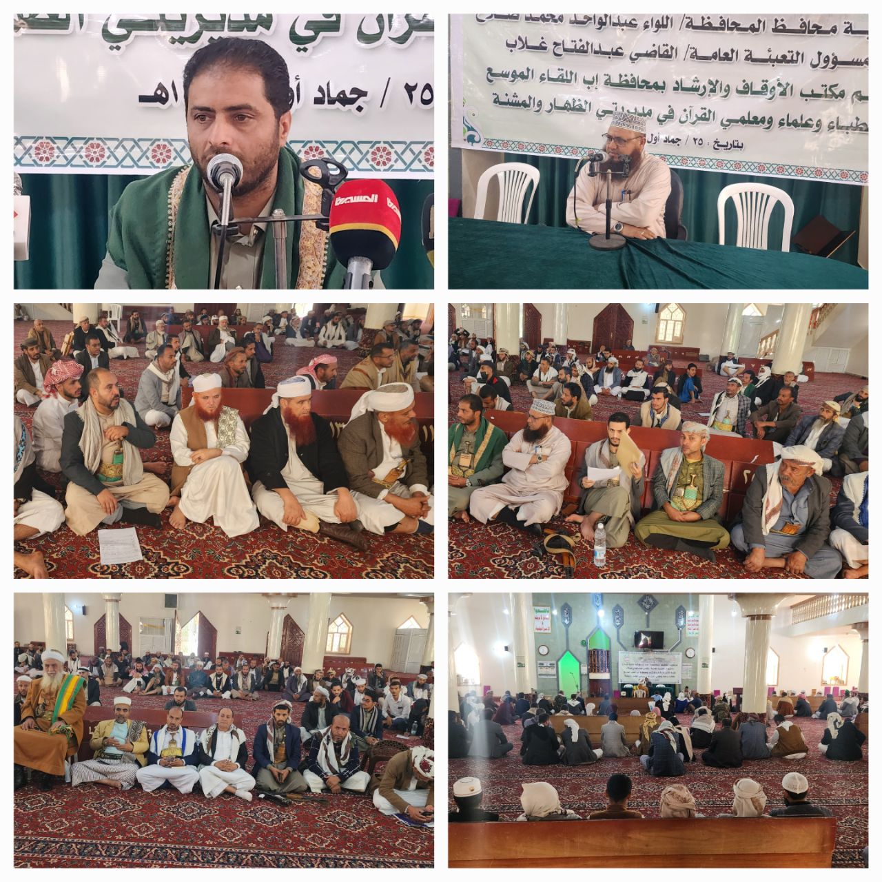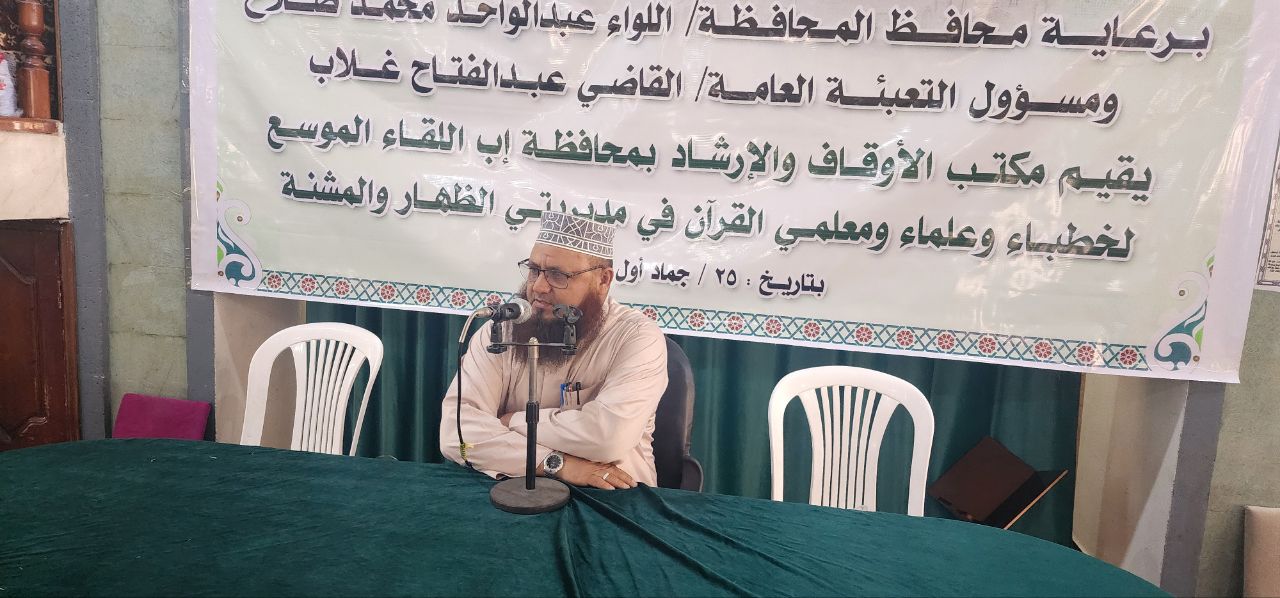 أقام مكتب الأوقاف والإرشاد في محافظة إب اليوم، لقاءً موسعا لعلماء وخطباء ومعلمي القرآن في مديريتي الظهار والمشنة ..