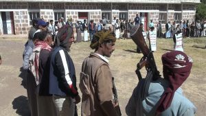 إب : وقفة قبلية مسلحة في عزلة عروان بالسبرة استعدادا وجهوزية ومباركةً للانجاز الأمني