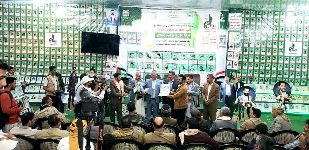 تواصلا للفعاليات والأنشطة المقامة بمناسبة الذكرى السنوية للشهيد كرمت جامعة إب والملتقى الطلابي كوكبة من أسر الشهداء الذين جادوا بأرواحهم دفاعا عن الدين والوطن .