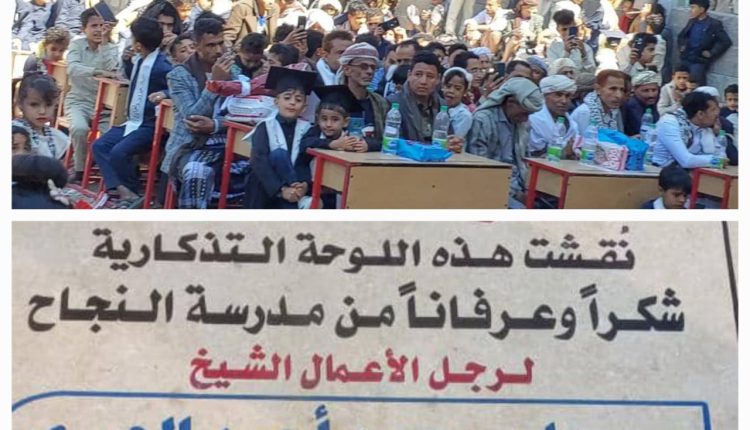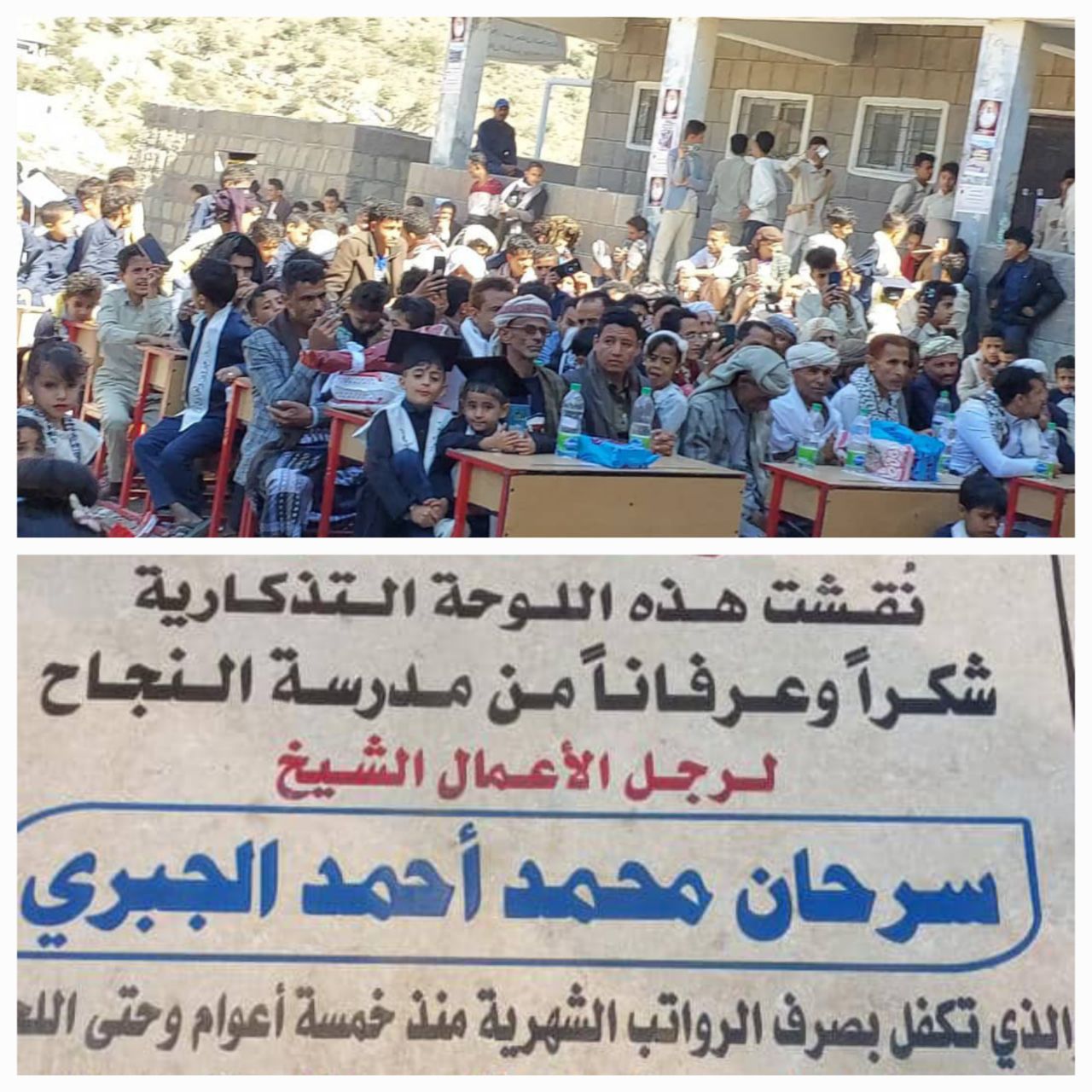 رجل أعمال من محافظة إب يصرف رواتب مدرسة شهرياً منذ خمسة أعوام والمدرسة تضع لوحة تذكارية تكريما له